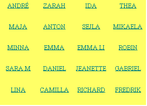 Välkommen till vår hemsida, klass 4c på parkskolan i Osby. Vi är 23 elever i klassen, 7 killar och 16 tjejer. Vår skolgård är mycket fin för den ligger vid Osbysjöns strand. Våra lärare heter Gunilla och Per-Arne. Om du vill läsa om vad vi har på gång i klassen besök vår aktuelltsida. Om du vill läsa mer om oss som går i klassen klicka på våra namn här nedanför.
